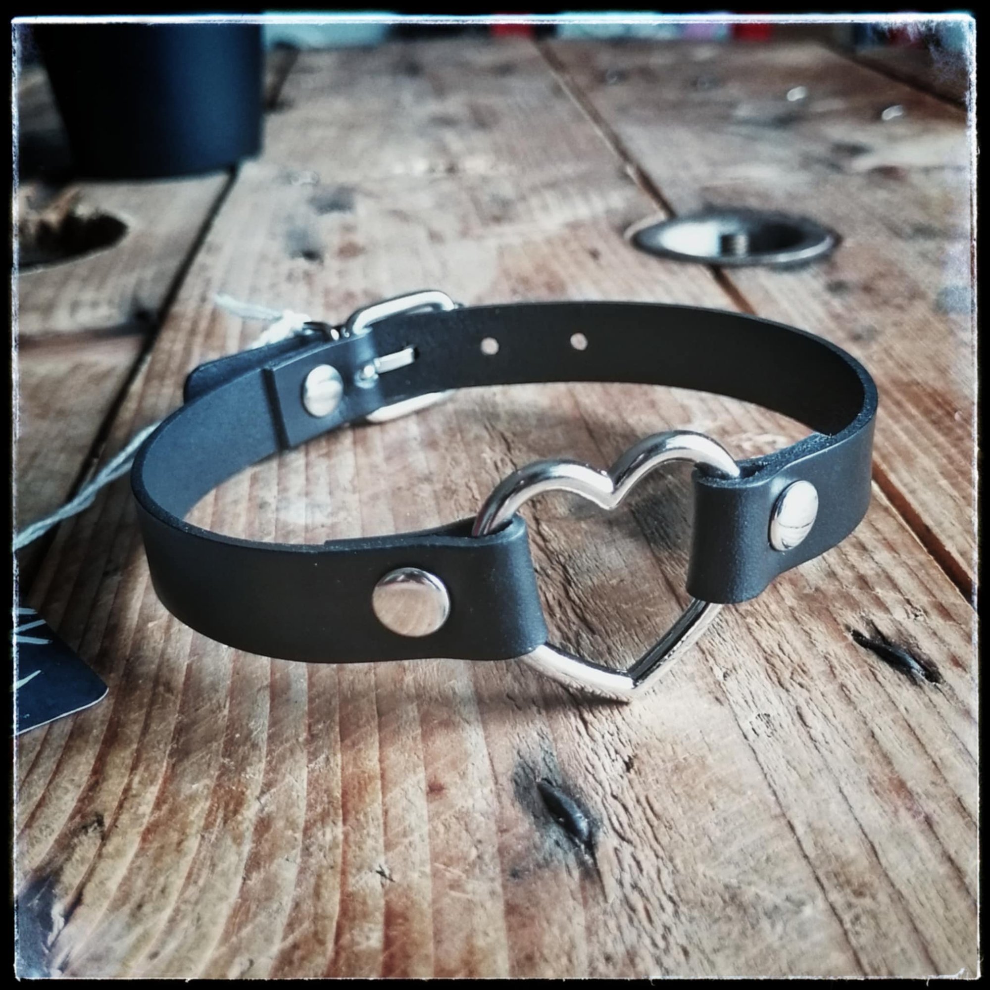 Choker 15mm avec anneau cœur, en cuir véritable.