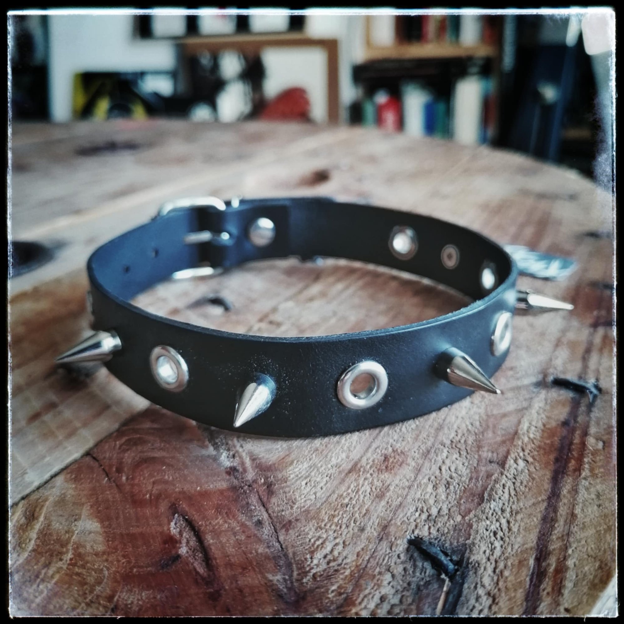 Choker à clous, en cuir véritable.